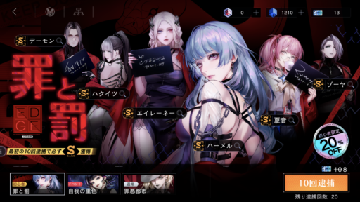 事前登録報酬分と合わせ20連のガチャが引けるので、早めに回すようにする