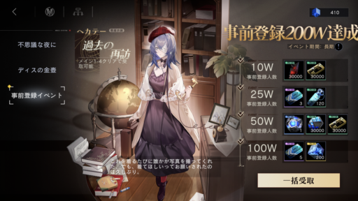| 3 | イベント画面から事前登録報酬をもらい、リセマラを行う |