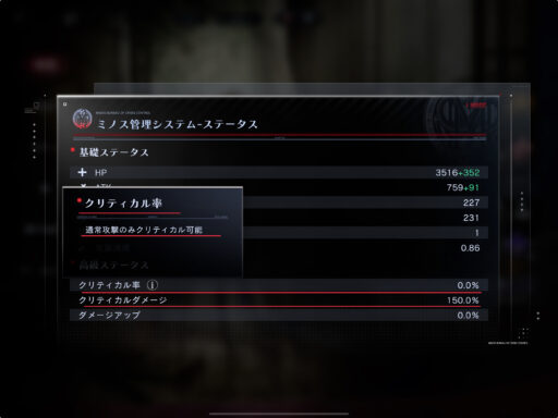 クリティカル率0%=クリティカル攻撃が発動しない