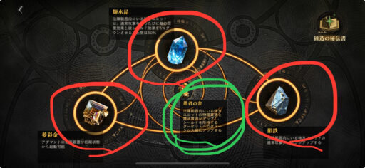 バフアイテムセットは溶金の聖地ボタンをタップ